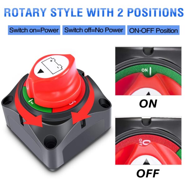 3. Compatible: used for DC 12 – 48V systems to isolate and secure the electrical system, can stand alone or be locked together with other switches. Its purpose is to eliminate any 4. power draw from the battery when the vehicle or boat is not in use, disconnect the battery safely.